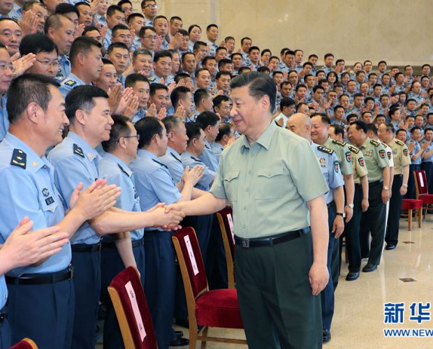 6月18日,中共中央总书记、国家主席、中央军委主席习近平在北京接见空军第十三次党代表大会全体代表。这是习近平同代表们亲切握手。 |