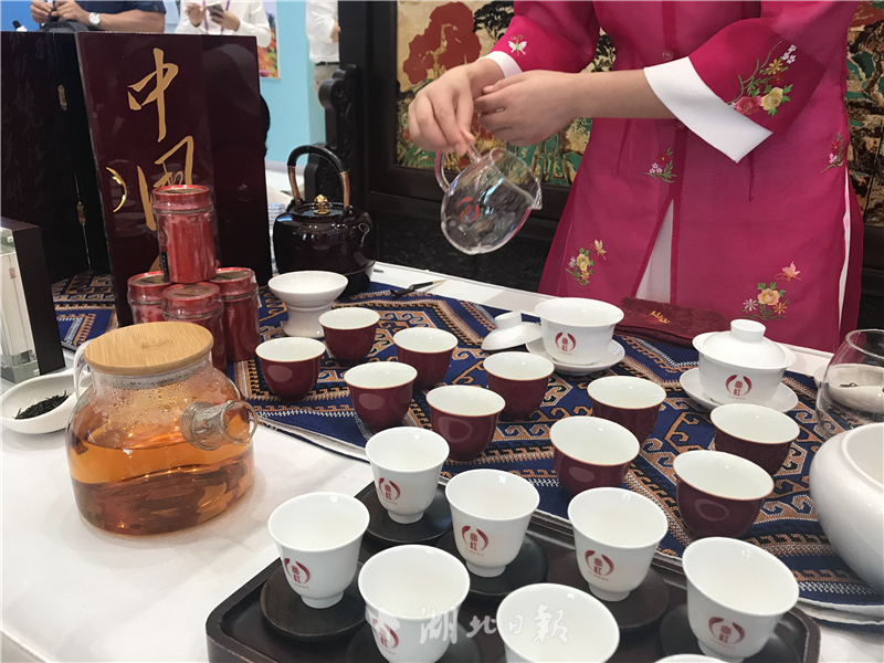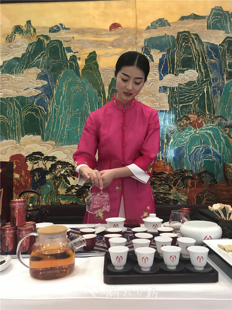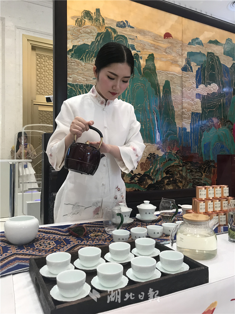 转过身,被人们团团围住的又是什么呢?原来是恩施玉露和宜红茶的两位非遗传承人正在进行现场展示。这“一红一绿”可不简单。