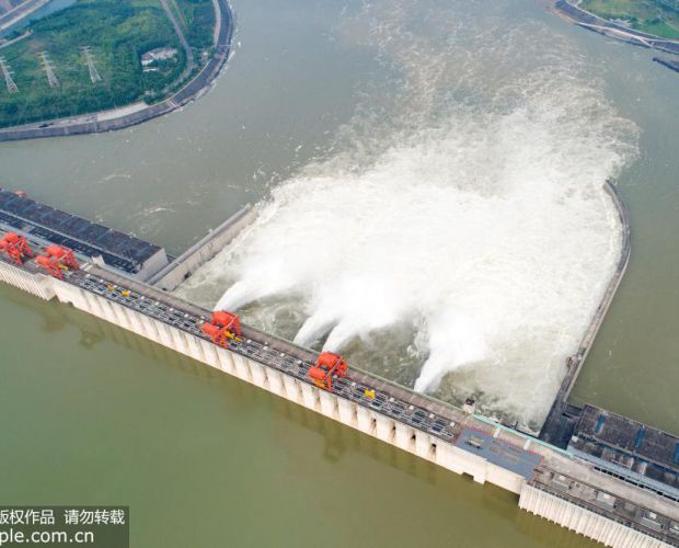 近日,受长江上游持续强降雨影响,三峡水库入库流量增加。为确保防汛安全,三峡枢纽开启深孔泄洪,场面十分壮观。王罡/人民图片