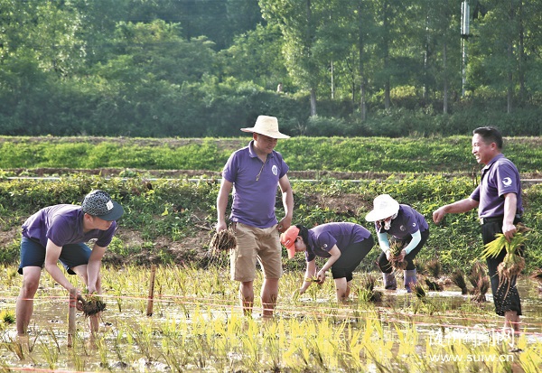 6月24日,随州大洪山旅业公司党委组织公司60余名党员群众到大洪山艺术稻田里和村民一起插秧,以实际行动践行党的群众路线。