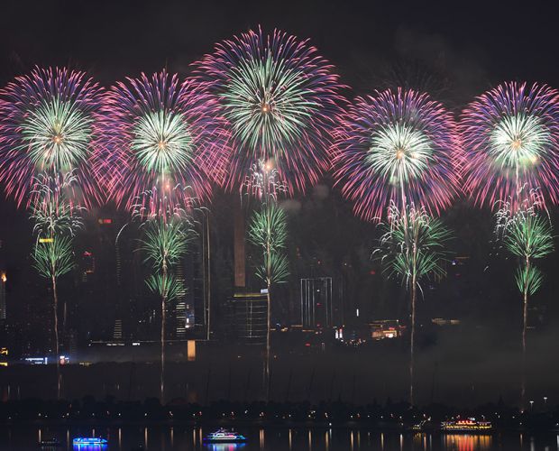 6月26日,为迎接首届中非经贸博览会,主题为“结伴而行·筑梦未来”的焰火表演在湖南长沙橘子洲头举行。 新华社记者 薛宇舸 摄