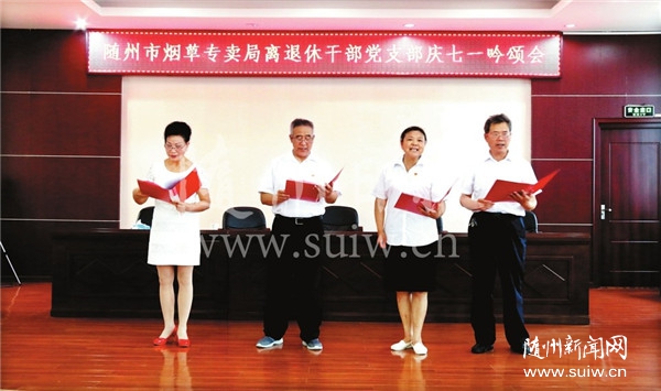 随州日报讯 6月28日,市烟草专卖局离退休干部党支部开展庆“七一”系列活动。图为吟颂会上老党员们满腔热情讴歌新时代,抒发对党的祝福。(随州日报通讯员曾宪芳摄)