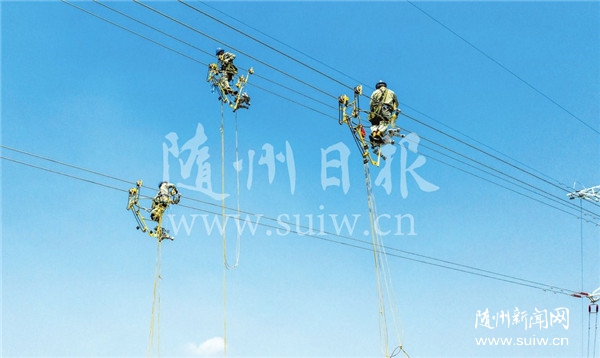 随州日报讯 随州供电公司安装公司龙湾至石桥110千伏线路工程日前正加紧施工。该工程项目加强了广水电网与随州城区电网牵手联络,有利广水新能源电网输出。(随州日报全媒记者 孙洪涛、通讯员李建明、冯刚摄)
