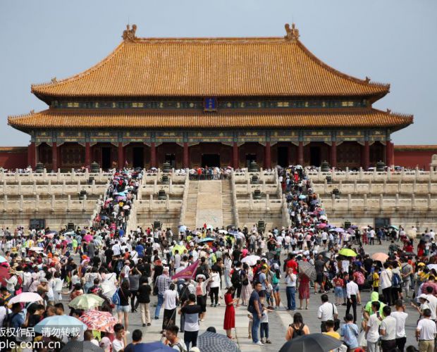 2019年7月7日,随着暑期到来,大批游客来到北京故宫参观游览,景区内游人如织。卞正锋