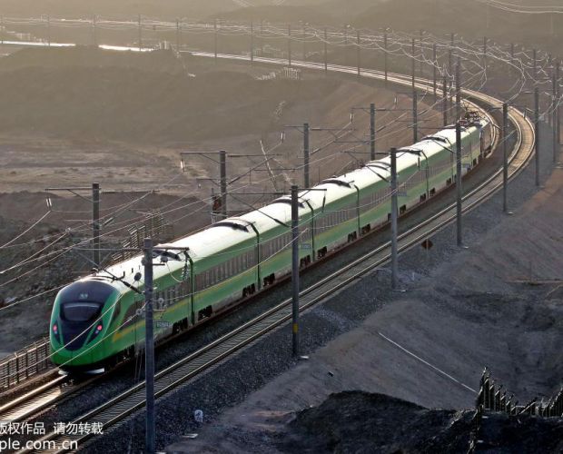 2019年7月28日,一列复兴号“绿巨人”动车组列车驶过甘肃、新疆交界的兰新铁路红柳河特大桥,这是新疆迎来的首列复兴号“绿巨人”动车组列车,这次复兴号“绿巨人”动车组列车驶进新疆有两列,将于近日投入投入运营。