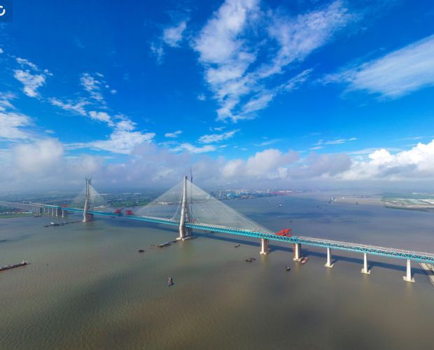 2019年8月5日凌晨1时许,经过5个多小时的连续奋战,由中铁大桥局承建的沪通长江大桥主航道桥26号墩边跨钢梁实现高精度对接,完成了主航道桥首个边跨钢梁胜利合龙,为国庆节之前全桥钢梁贯通打下了坚实的基础。沪通长江大桥南通段,共有31个桥墩,其中,1-28号墩在南通境内。主航道28号墩首节段钢梁从2018年5月10日开始吊装,历经450天,进行了47次共计81.5个节间钢梁的吊装,总长度1141米,重量达6万余吨,实现了主航道桥首个边跨钢梁的合龙。沪通长江大桥是我国“八纵八横”高铁网中沿海铁路大通道的咽喉工程。上层为双向六车道高速公路,下层为双线沪通铁路和双线通苏嘉城际客运专线。按照计划,沪通长江大桥将于2020年7月与沪通铁路同步建成通车。届时,长江南北的铁路和我国沿海铁路通道将因此贯通,为沿线以及周边城市的交通和经济发展注入新动力。