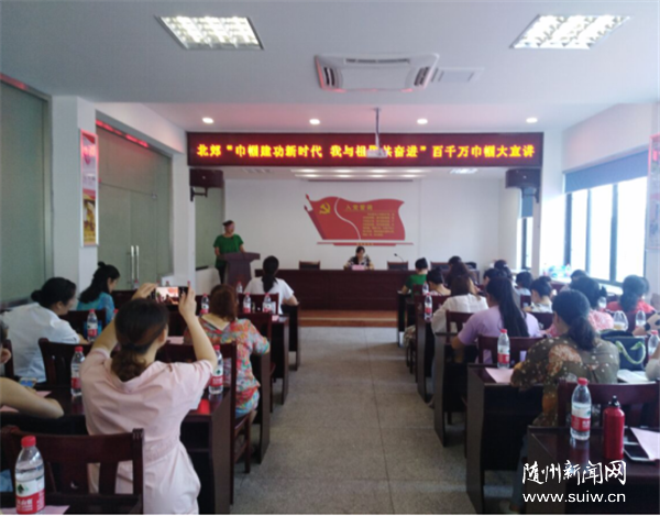 随州新闻网讯(通讯员 夏国青)2019年是新中国成立70周年。北郊办事处妇联通过寻找“最美芳华·70年70人”和寻找“最美妇联人”系列活动,挖掘发现8类优秀的妇女代表进行主题演讲。8月7日上午8点,北郊办事处举办“巾帼建功新时代·我与祖国共奋进”百千万巾帼大宣讲活动,北郊办事处妇联执委、村(社区)、部门妇联执委们和基层先进典型代表共80余人在楚风社区欢聚一堂。邀请随州市妇联组宣部部长向艳同志,曾都区妇联主席江山同志、副主席刘锦华同志、办公室主任王美华同志亲临现场指导。