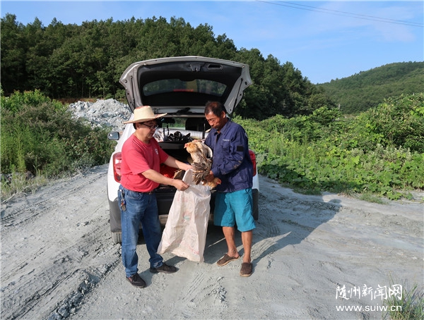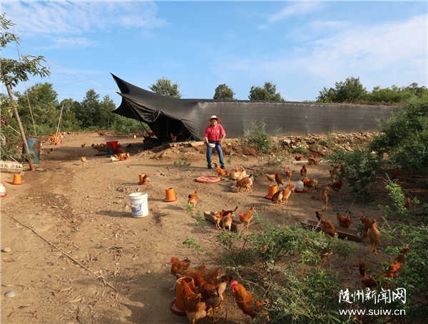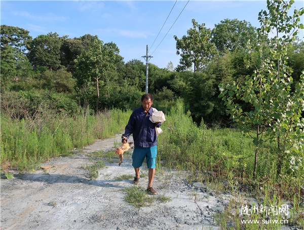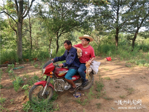 老程,叫程道喜,是我们驻随州市曾都区万店镇粉鋪精准扶贫村的贫困户,我任村第一书记时,他开始养草土鸡,用他的话说:就是那年我们成了好朋友!2017年元月大雪下了整整一个月,老程养的三千多支土草鸡子都长到三斤多了,不可能再长重量了,而且鸡子市场价格下跌,销售行情对养鸡人十分不利,若不及时将鸡子卖出,他每天要亏损120元的玉米粉喂鸡钱,听说他的困难后,我先是联系了市电视台的付主任到他鸡场采访,宣传他的土草鸡是无饲料、靠食草虫和玉米粉的环保鸡,为他做免费电视广告促销。我又用一星期的时间,和他俩骑着摩托车,驮着土草鸡,冒大雪上门到市区职业高中,审计局等单位,向同学和朋友推销购买。经过我们精准扶贫工作队的努力,很快将他余下的土草鸡销售出去了,我个人帮他销售土草鸡就有380多支,这一年,老程赚到了精准扶贫以来的第一笔家庭生产项目收入。2008年他外出打工生病痊愈后,2019年又开始养土草鸡。今年7月6日,我陪记者到粉铺村釆访扶贫情况,来到了老程的鸡场。看到老程养的4000多支土草鸡,在山上草丛中寻食虫草,真替他高兴!俗话说“鸡飞上树,喜上眉梢!”,这里的鸡和其它鸡真的不一样,不仅会飞,还会上树,不仅如此,它们全身上都是宝。这哪里是鸡啊,这简直就是鸟啊,这种鸡喜欢隐藏在深山老林中,其鸡冠、鸡眼睛,甚至鸡骨都是金黄色的,每天喝着山水,吃着草长大,冬天吃王米粉,从不吃饲料!他是鸡中的精品,俗称土草鸡!