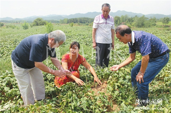 随州日报讯  8月11日,随县正华种养殖专业合作社,组织技术人员,到百亩优质红薯地就旱情进行会诊,研究抗旱对策。(随州日报通讯员 多思摄)