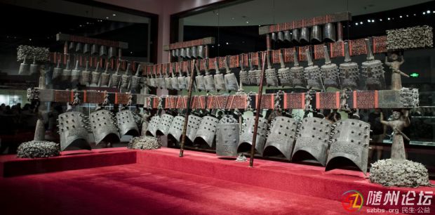 至今,曾侯乙编钟仍是中国出土数量最多、重量最重、音律最全、气势最为宏伟的一套编钟。其巍峨、完美的“曲悬”架式,与配套的曾侯乙编磬,完整、明确地呈现了周代诸侯的“轩悬”制度,并与其他青铜礼器一起交织出一幅近于现实的礼乐场景。