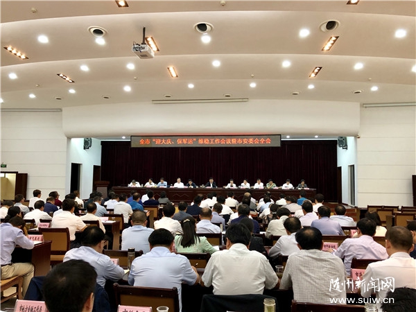 随州日报讯(全媒记者 刘诗诗)9月18日,全市“迎大庆、保军运” 平安稳定工作会议暨市安委会全会召开,市委书记陈瑞峰强调,要把思想和行动统一到党中央和省委对当前形势的科学判断和决策部署上来,增强政治敏锐性,强化措施、化解矛盾、防范风险,全面筑牢各领域安全防线,全力做好“迎大庆、保军运”平安稳定各项工作,切实为新中国成立70周年大庆和第七届世界军人运动会顺利举行,营造平安稳定的社会环境。