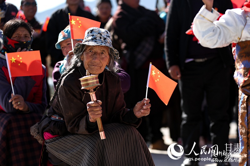 人民网兰州9月28日电(王文嘉)为热烈庆祝新中国成立70周年,充分展示70年来的光辉历程和伟大成就,9月25日至9月27日,由甘南藏族自治州州委宣传部主办的“和阿爸阿妈一起,向国旗敬礼”主题快闪活动,分别在甘南藏族自治州碌曲县尕秀村、卓尼县尼巴村、夏河县黑力宁巴村举行。