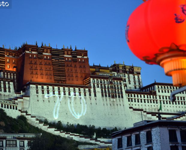 拉萨布达拉宫上演灯光秀 庆祝新中国成立70周年