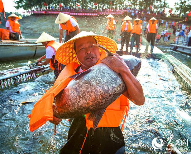当天,南湾湖2019开渔节开幕。在开渔现场,更是上演了一场巨网捕鱼的视觉盛宴。记者在现场看到,渔民们将捕鱼船慢慢围合捕鱼水域后,再用巨网捕捞,群鱼乱舞、上跳下跳,引起不少看稀奇的市民阵阵尖叫。为了让游客切实感受到鱼悦丰收的欢乐氛围,主办方还特意用一口可容纳4吨水的巨型圆锅烹饪了鱼汤免费供现场数万名市民品鉴尝鲜,获游客点赞。