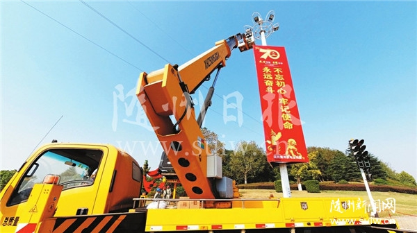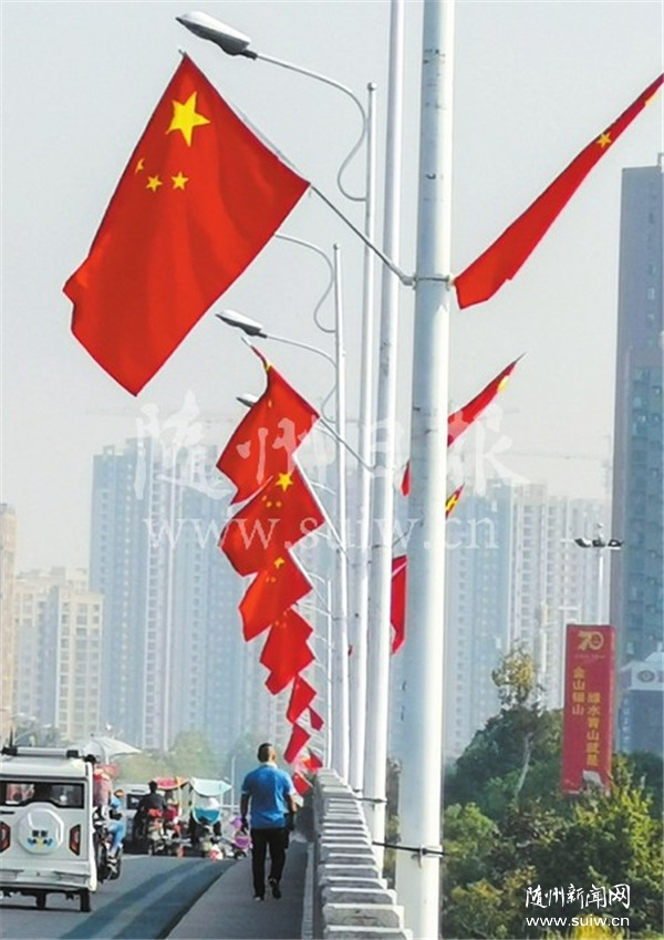 五星红旗在随州城区街道迎风飘扬