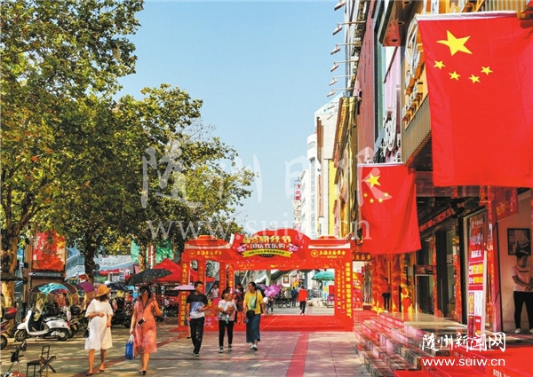 随城解放路店家门前挂上一幅幅国旗