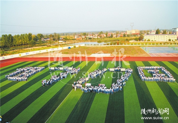 随县一中千名学生摆出“祖国70”周年图案
