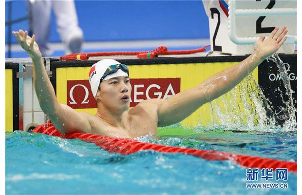 10月20日,中国选手汪顺在比赛中。 当日,在武汉进行的第七届世界军人运动会男子200米个人混合泳决赛中,中国选手汪顺以1分56秒25的成绩获得金牌,另一名中国选手覃海洋以1分56秒79的成绩获得银牌。 新华社记者 刘续 摄