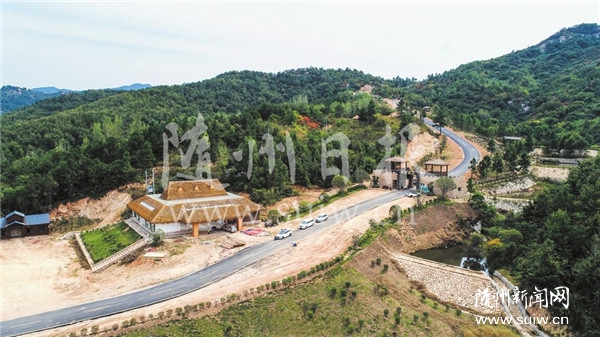 随州日报讯 坐落于随县淮河镇龙泉村的神农部落景区以发现大量远古部落古岩画而蜚声中外。该景区总投资13亿元,按国家5A级标准打造人类繁衍生息和华夏及神农文明的发源地。目前景区建设正在稳步推进,主体配套工程接近完工。图为即将启用的神农部落景区入口。(随州日报全媒记者 李文军摄)
