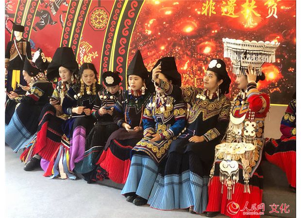第七届中国成都国际非物质文化遗产节上,凉山彝族传统服饰展示。人民网吴晓琴 摄