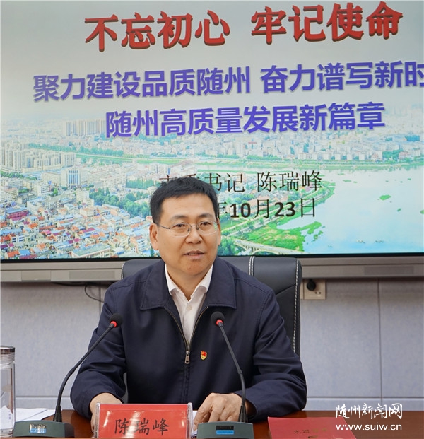 随州日报讯(全媒记者张琴、见习记者杨仪凡)根据省委、省政府关于加强和改进新形势下高校思想政治工作的要求和市委“不忘初心、牢记使命”主题教育工作安排,10月23日,市委书记陈瑞峰到随州职业技术学院开展“不忘初心、牢记使命”主题教育形势政策教育活动,寄语广大青年要以习近平新时代中国特色社会主义思想为指导,深入学习贯彻习近平总书记关于青年工作的重要论述,增强“四个意识”、坚定“四个自信”、做到“两个维护”,知史爱党、知史爱国,了解随州、关心随州,砥砺爱国情怀,弘扬工匠精神,在建设品质随州、推动高质量发展的征程中奋力谱写无悔青春的人生华章。