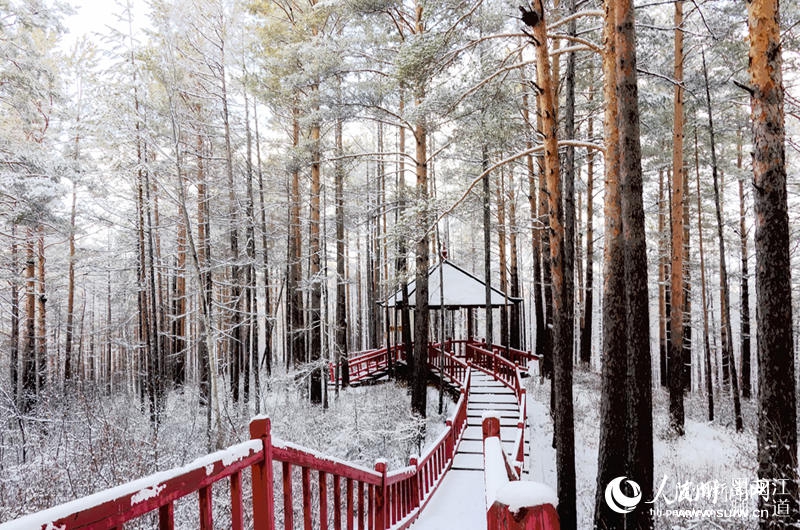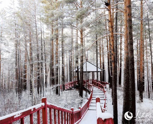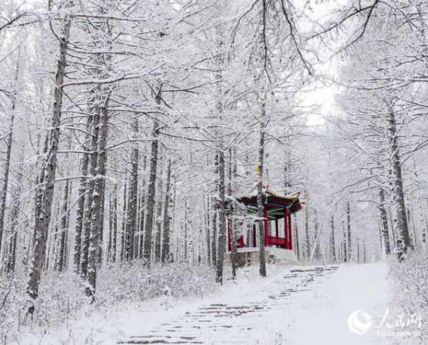 人民网哈尔滨11月4日电 10月末的“霜降”节气过后,“中国爱情小镇”大兴安岭新林区迎来了多场降雪。雪后的南山被一场场白雪覆盖,人们拾级而上,徜徉在原始森林公园,闲庭漫步于松雪画廊之间,心旷神怡,宛若走进曼妙的山水画卷。
