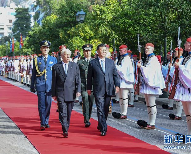 会谈前,帕夫洛普洛斯为习近平举行隆重欢迎仪式。