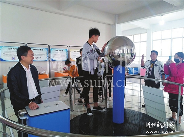随州日报讯 11月22日,在广水市科技馆,一名高中生站在静电魔球旁体验“怒发冲冠”科普趣味项目。经过多年建设,目前广水科技馆设有声光体验、电磁探秘、数学魅力、科学表演等各类科普展品22类100余件,成为各界群众学习科普知识,掌握科学技能的主要阵地。(随州日报全媒记者陈巧玲、通讯员芦亚梅摄)