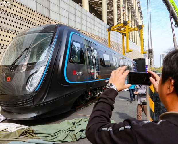 2019年12月4日,中国中车4辆轨道交通真车正在杭州国际博览中心布置参展。其中,中车四方时速600公里级高速磁浮样车“高速蓝”特别亮眼。这辆是科技部“十三五”立项课题,代表了我国在磁浮领域的新突破。作为2019浙江国际智慧交通博览会重要参展商,按照国际一流轨道展会惯例,轨道交通馆真车展示区举行真车集中展示揭幕仪式后,4种车型将闪亮登场,杭州市民可以亲身体验智慧交通的“未来速度”。
