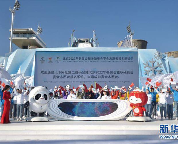 12月5日,北京市委书记、北京冬奥组委主席蔡奇(前中)与志愿者代表共同开通赛会志愿者全球招募网络系统。当日是第34个国际志愿者日,北京2022年冬奥会和冬残奥会赛会志愿者全球招募正式启动。北京冬奥组委计划招募2.7万名冬奥会赛会志愿者,1.2万名冬残奥会赛会志愿者。新华社发(彭子洋 摄)