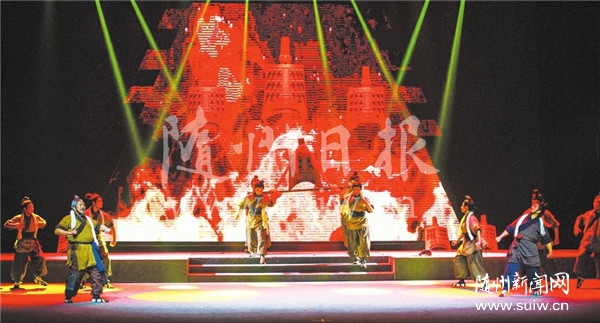 随州日报讯 12月13日晚,大型原创历史题材随州花鼓戏《随国金声》在神农大剧院上演。该剧讲述了2000多年前战国时期随国曾侯乙不畏艰难铸造编钟的感人故事。整个剧情大气磅礴,气势恢宏,再现了我国古代青铜工艺及音乐艺术的巨大成就。 (随州日报全媒记者 李文军摄)