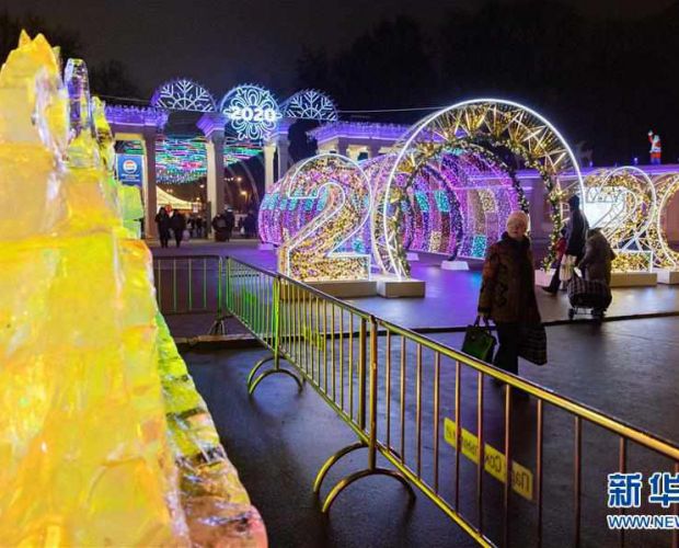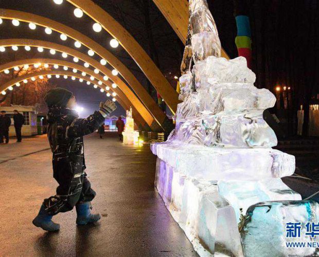 12月24日,在俄罗斯首都莫斯科,小朋友参观冰雕艺术展。 哈尔滨冰雕艺术展24日在莫斯科开幕,现场展出了哈尔滨大剧院、防洪纪念塔以及莫斯科红场建筑群等惟妙惟肖的冰雕作品,吸引众多游客驻足拍照。 参加本次冰雕艺术展的十名冰雕师提前抵达莫斯科,以新中国成立70周年、中俄建交70周年、“一带一路”倡议等为主题,为莫斯科民众奉上了精美的新年礼物。 新华社记者 白雪骐 摄