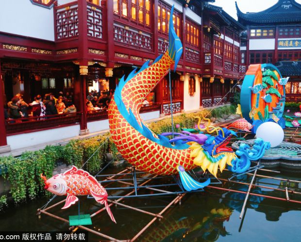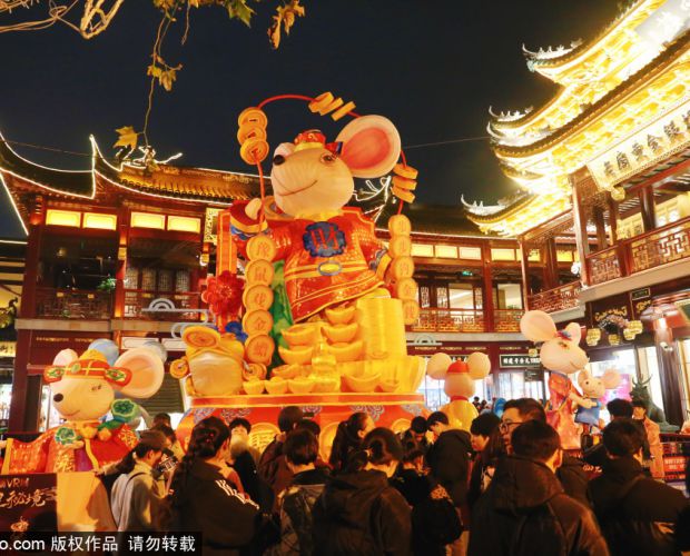 2019年12月29日,随着2020元旦新年临近,上海最具年味的豫园老街新春民俗艺术灯会也如火如荼地布置起来。作为每年一度老城隍庙的传统灯会这次将以“全面奔小康·幻彩中国年”为主题迎接农历庚子鼠年。在老庙黄金银楼前的黄金广场上,穿着红色唐装的“老鼠财神”一家子颇为喜庆吸引眼球,包括九曲桥荷花池景区的艺术灯组,尽管还没完全亮灯,但依然吸引众多游客打卡。
