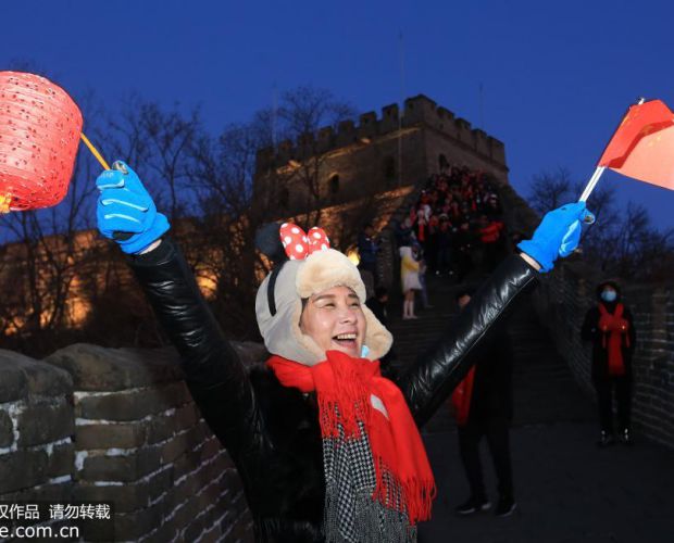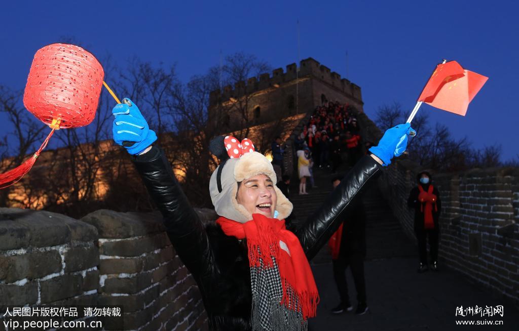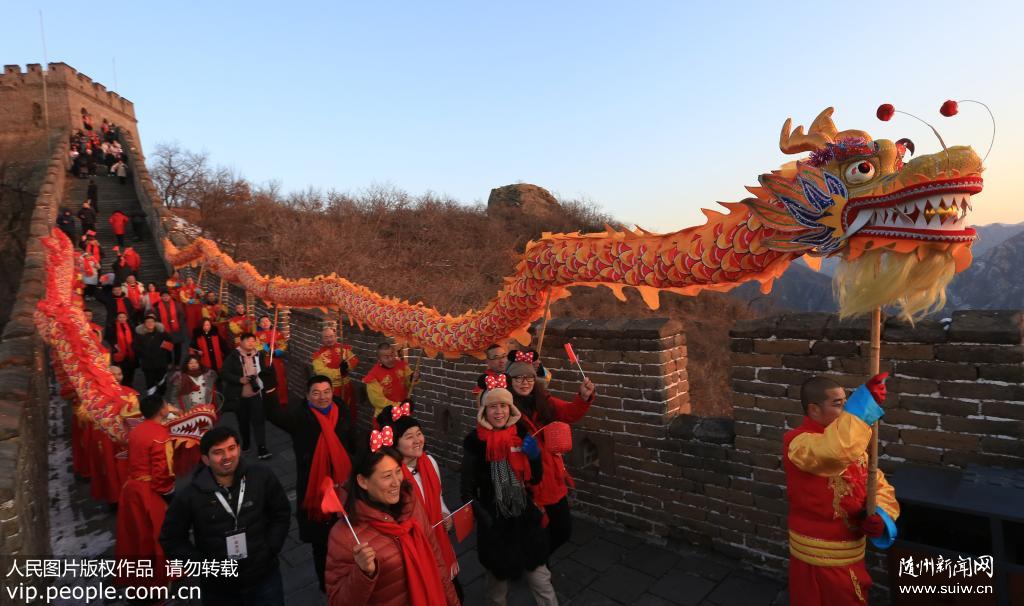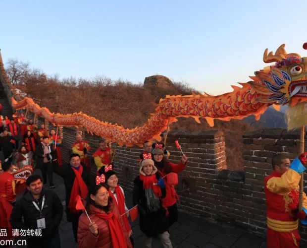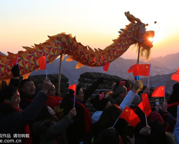 2020年1月1日,北京怀柔慕田峪长城举办“慕御初光·好运长城”元旦观日出活动。众多市民以及来自国外的友人登高远眺,在古长城观看舞龙舞狮,迎接2020年元旦第一缕阳光。共同祝福伟大祖国繁荣昌盛。