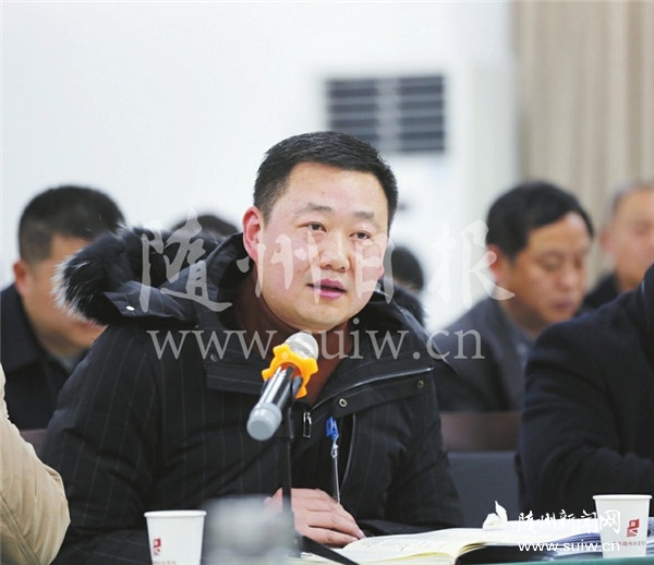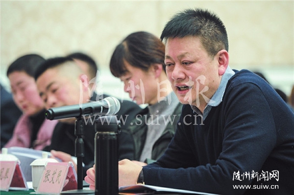 沈强代表就如何保持我市香菇产业可持续发展提出建议。 (随州日报全媒记者李文军摄)