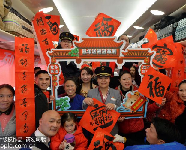 2020年1月14日,由贵州省总工会、贵阳客运段联合开展的“贵州务工人员返乡号”列车“五送”系列服务活动在上海南—贵阳K111次列车上举行。列车上,每节车厢内和窗户上或悬挂着红灯笼或粘贴着“回家过年”“家乡味道”“返乡号列车鼠年迎新送福活动”等字样,一派红红火火喜气洋洋的气氛。活动中,书法家为旅客现场挥毫免费为旅客书写福字和春联、文艺工作者、乘务员为旅客尽情表演各种喜闻乐见的文艺节目,欢声笑语此起彼伏,车厢里洋溢着欢快的气氛。30余名受邀的返乡农民工旅客代表现场观摩并参与了“列车餐车厨艺传授”过程,从菜品配制、菜品烹饪,到菜品品尝,餐车飘散出来的食物芬香与舌尖上味绝的美食感受,让每一位旅客赞不绝口。