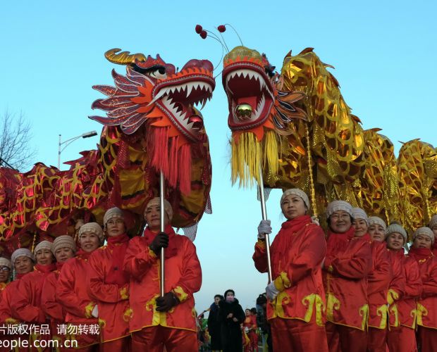 2020年1月17日,辽宁大连金石滩第三届新春文化节暨新春花灯会开幕。现场民俗节目划旱船、舞龙、腰鼓、大秧歌等各种民俗展演吸引了众多游客前来观赏,人们赏花灯品民俗感受浓浓的新年喜庆氛围。黄金崑