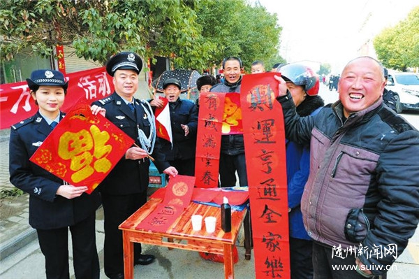 随州日报讯 1月19日,襄阳铁路公安处文艺宣传小分队深入随州南站开展“百万警进千万家”宣传活动,向乘车旅客们送去新春祝福。他们将铁路春运安全知识融入表演,献上一系列精彩演出,并通过向旅客发放宣传册、春联等形式,开展安全宣传及爱民服务活动。(随州日报全媒记者李文军摄)