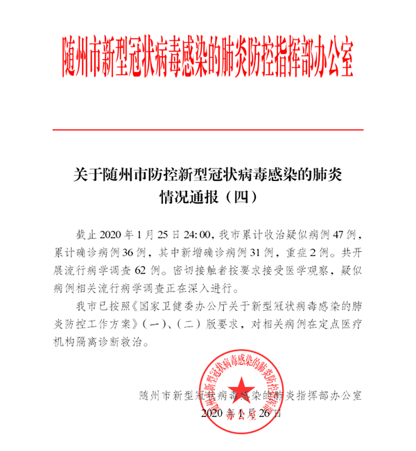 【权威发布】关于随州市防控新型肺炎的情况通报(四)