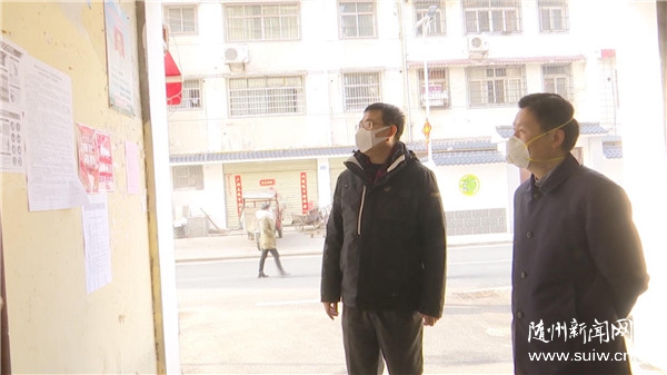 基层组织发挥作用如何,是否铸牢疫情防控第一道防线?带着这些问题,陈瑞峰直接来到曾都区东城办事处文峰塔社区和文峰都市花园小区、西城办事处草店子社区,实地督导检查新型肺炎疫情防控工作落实情况。陈瑞峰详细查看了宣传通告张贴情况,到社区了解武汉返乡人员居住、登记和疫情排查情况,指出了宣传发动方面存在的突出问题。他指出,要充分发挥基层党组织的战斗堡垒作用和共产党员的先锋模范作用,让党旗在防控疫情斗争第一线高高飘扬,充分调动基层党员干部的积极性、主动性,全面发动群众参与到群防群控中来;要充分运用“访议解”等载体,对重点地区外来、返乡人员进行全覆盖健康登记、体温测量,切实织密筑牢疫情防控网络;要加大疫情防控知识宣传力度,结合实际,通过群众喜闻乐见的形式,及时公开各类防控信息,提升群众自我防范意识,让群众清楚认识疫情防控重要性、准确掌握自我防护知识,避免造成交叉感染。