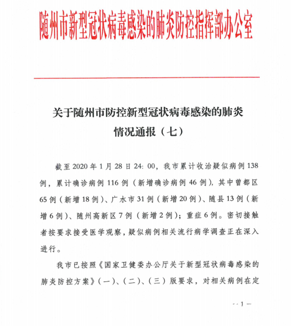 【权威发布】关于随州市防控新型肺炎情况通报(七)