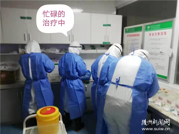 面对突发疫情,隔离病区转入患者人数剧增,该科护士长谌春仙每天忙碌地穿梭在病区各个楼层之间,协调各项工作,与每位患者及家属耐心做好解释沟通。由于长时间不断说话导致声音嘶哑,高强度的工作下,她每天只睡两三个小时。她说:“与患者所承受的身体和心理上的双重不适相比,我们这些又算得了什么!”护士们在关键时刻勇担重任,舍小家为大家,全部吃住在科室。在此之前,因为抗甲流,她们已经超负荷工作两个多月,新型肺炎来袭,她们没有任何怨言,立即投入到疫情阻击战中。护士王国敏、卢成患重感冒仍坚守一线,被护士长强行劝离了岗位,她们说:“等我们稍好一些,我们一定回来和你们并肩作战!”护士鲁晓虹、王梦自身患有慢性病,却从未提出过离岗要求。