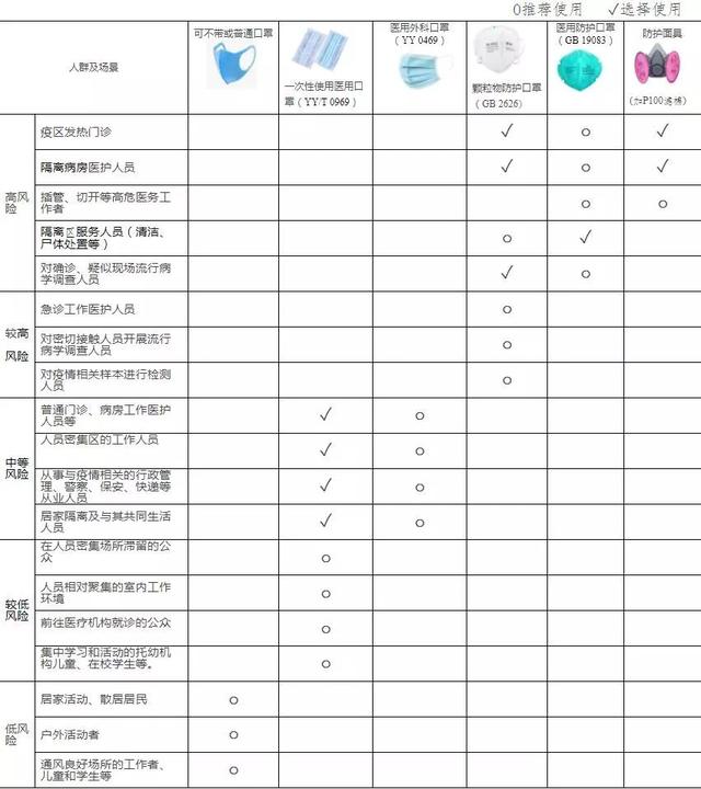 在新型冠状病毒感染的肺炎流行期间,建议选择合适的口罩类型,不过度防护。按防疫工作性质和风险等级提出以下指引: