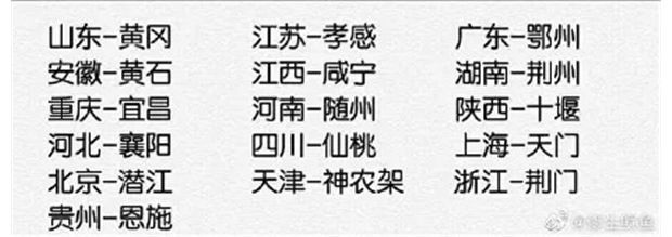 网传各省对口支援湖北地市情况