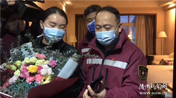 2月14日,随州市疫情防控指挥部后勤保障组和江西省援随前方指挥部的同志们得知当天是医疗队护士付正芳的25岁生日,虽然特殊时期条件有限,大家还是悉心为她准备了鲜花、长寿面,想给她一个惊喜,让她在紧张的战“疫”一线感受到在家般的温暖。他的战友们也纷纷在战“疫”一线用视频为她送上祝福。