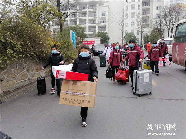 随州日报讯 (全媒记者徐军国)“随州加油”“我们必胜”。2月19日10时许,又一阵慷慨激昂的口号声在江西对口支援随州市医疗队驻地响起——第三批126名医护人员经上岗培训后,迅速奔赴随州各医院新冠肺炎患者救治的一线岗位。至此,江西援随医疗队389名医疗队员已全部投入一线战“疫”。