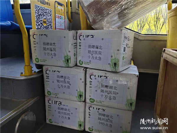 此次一起捐往市中心医院的,还有中央电视台捐来的7000只医用手套。因近年来参加《魅力中国城》竞演等,我市与节目主办方中央电视台一直保有联系,并与其他参赛城市建立了友谊。抗疫战打响以来,我市抗疫医疗物资紧缺。市文旅局积极对接央视财经频道,借助国家级媒体资源,从江苏一家医用物资制造企业为随州争取了5万套防护服的供货指标。