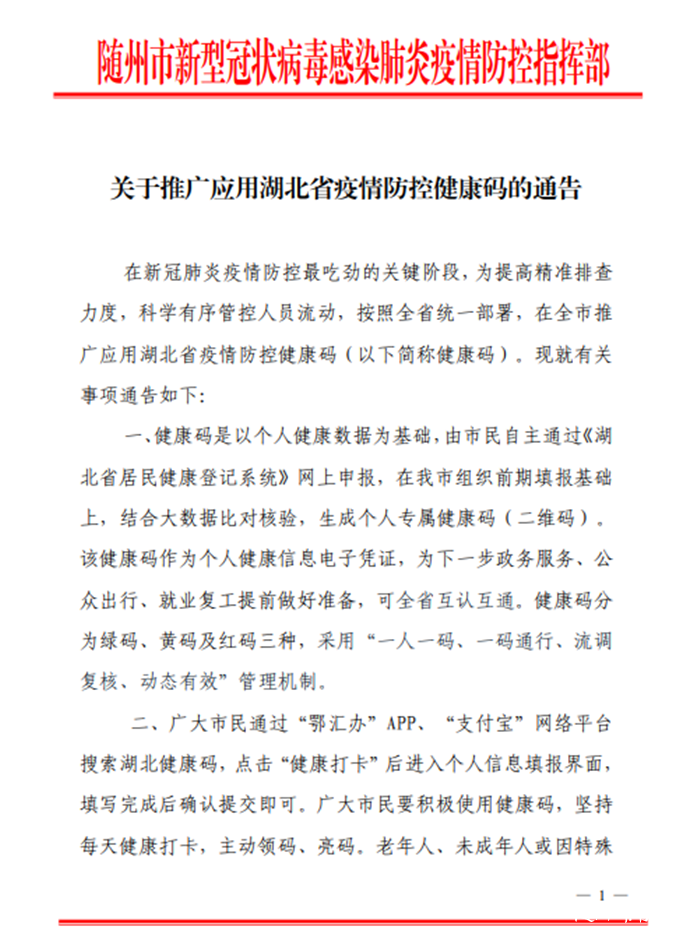 【权威发布】关于推广应用湖北省疫情防控健康码的通告