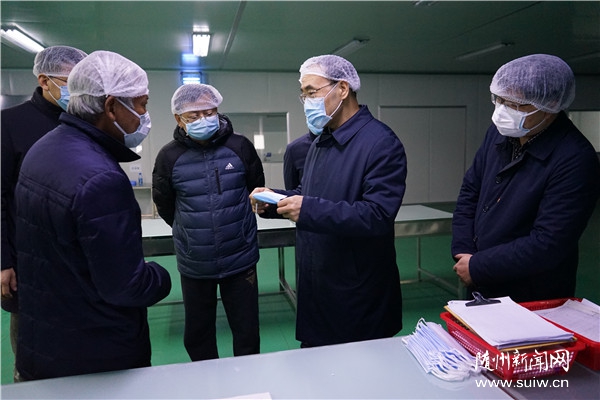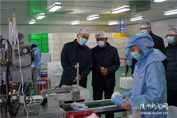 在广水市天成医疗科技制品有限公司,赵海山查看了生产线,与企业负责人交流,听取了企业生产及防控工作情况等方面的介绍,详细询问了存在的困难和需要解决的问题。他要求,企业要在做好防控工作的基础上,加大生产力度,确保产品质量,全力以赴增加市场口罩供应。
