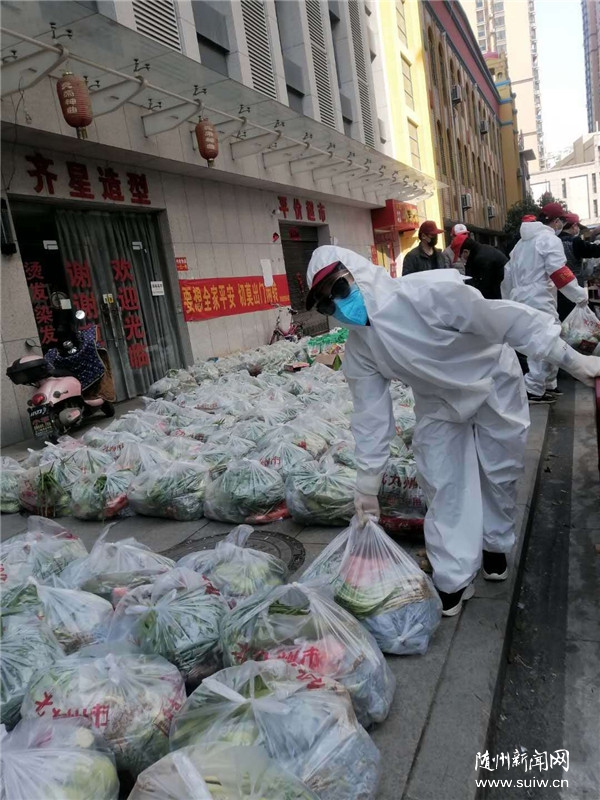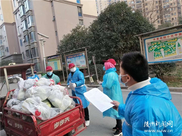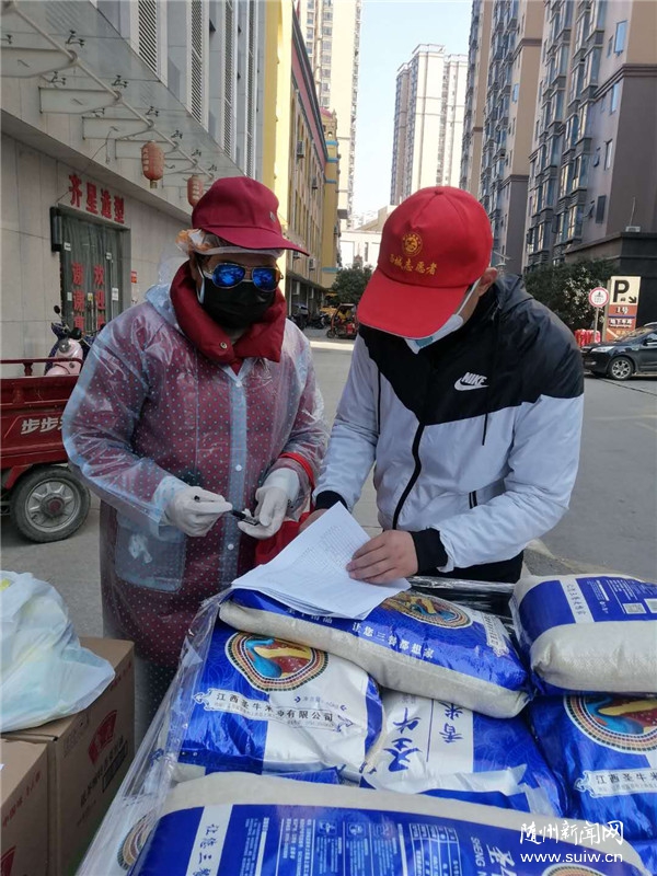 3月5日上午,曾都区西城办事处铁树社区齐星花园小区,志愿服务队队长王超拿着电话,一边与供应商沟通协调,一边在纸上记录。